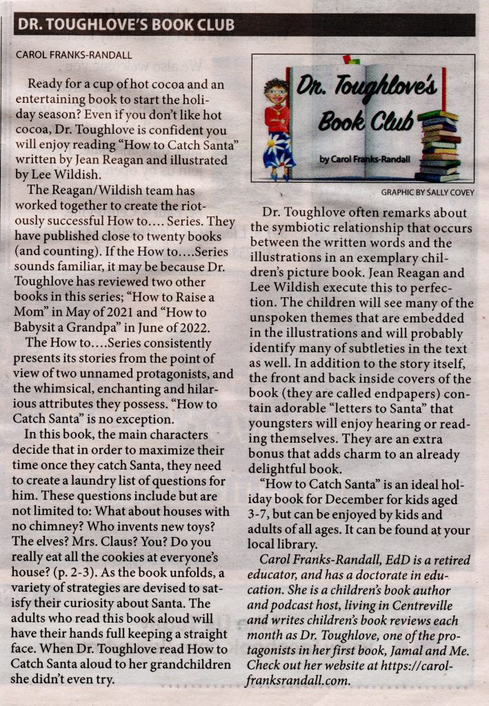 Ready for a cup of hot cocoa and an entertaining book to start the holiday season? Even if you don’t like hot cocoa, Dr. Toughlove is confident you will enjoy reading How to Catch Santa written by Jean Reagan and illustrated by Lee Wildish.